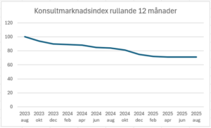 Generellt sätt följer konsultmarknaden den totala rådande Arbetsmarknaden med hög arbetslöshet. Arbetsförmedlingen ser viss optimism bland arbetsgivarna, framför allt på längre sikt, och man spår att arbetslösheten gradvis minskar under 2026.